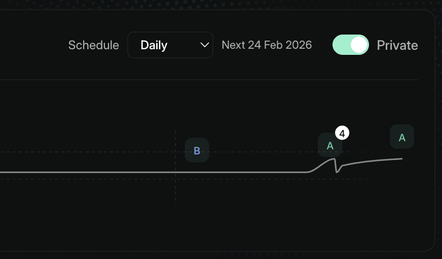 On the Pro plan, audit owners see a Private toggle in the report header. When enabled, the audit is only accessible to you - it won't be visible to anyone with the URL. Privacy can be toggled at any time after the audit completes.