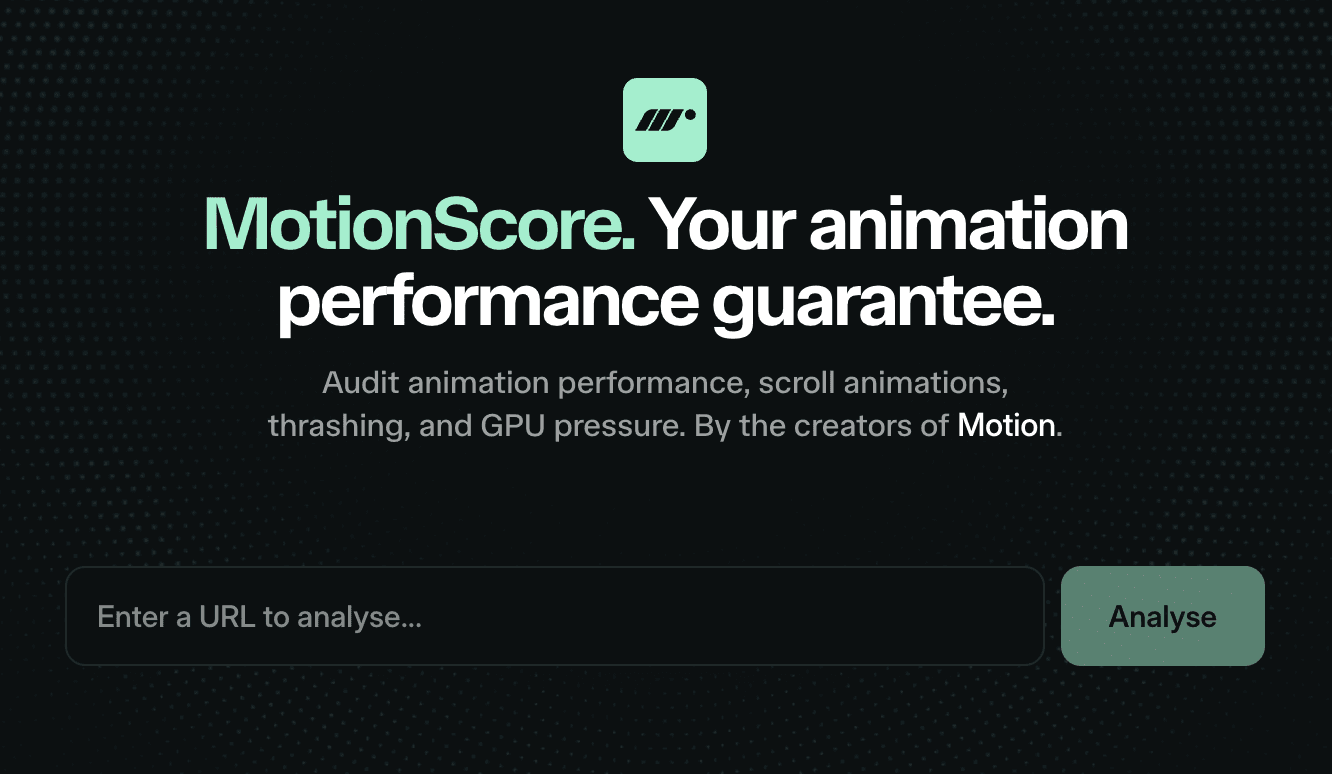 MotionScore's web UI is the easiest way to spin up new animation performance audits.